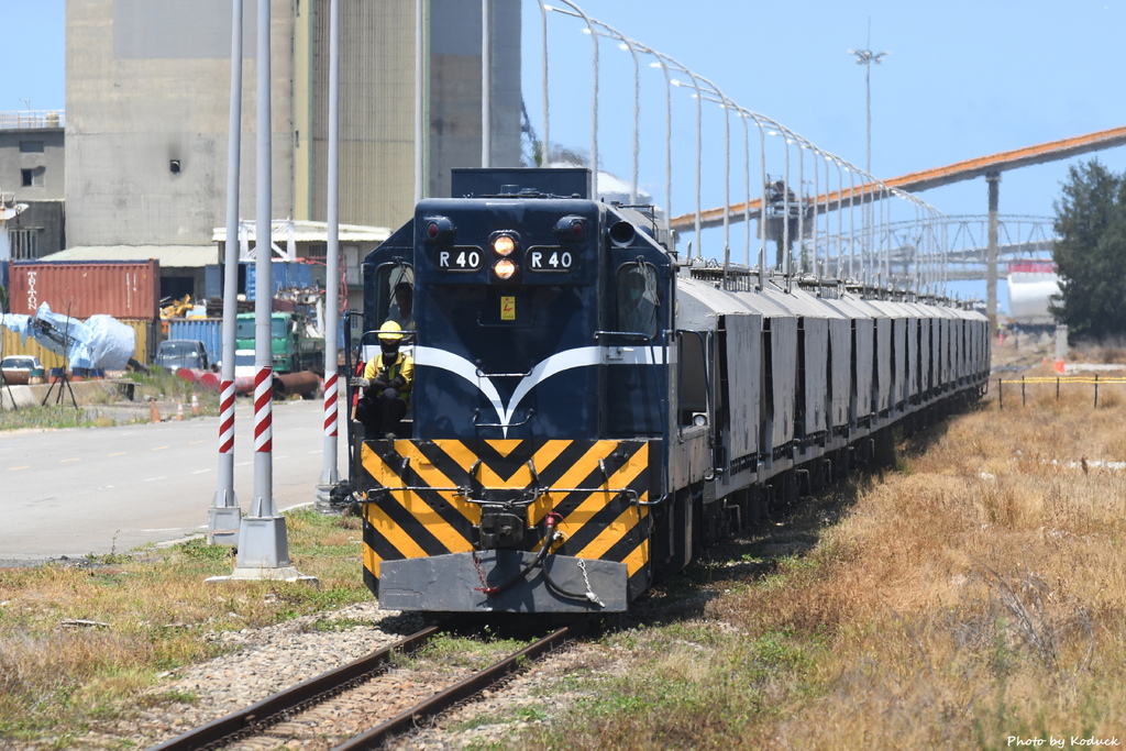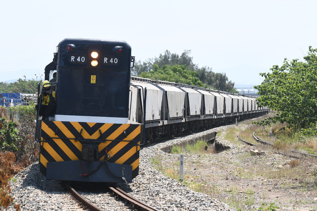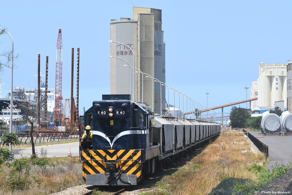 (24)R40牽引貨列@台中港線管制區,後面台灣水泥的設施相當搶眼。