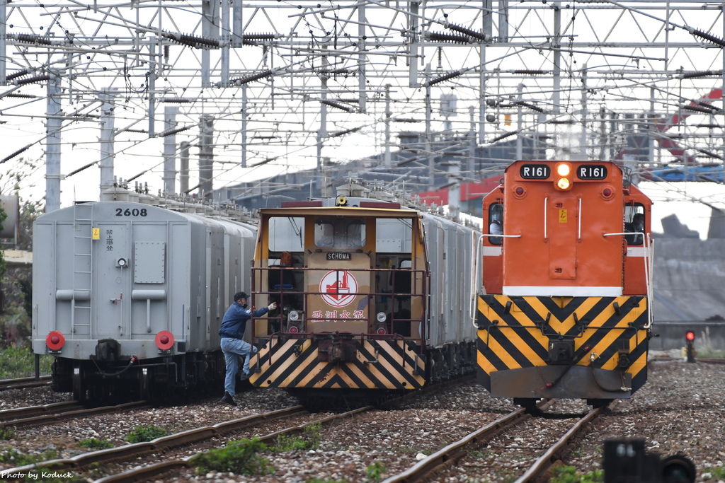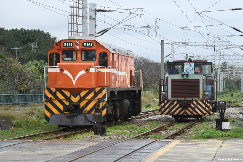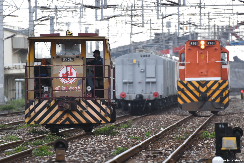 (1)調度中的R161與準備返廠的亞泥調車機,花蓮港線合影。