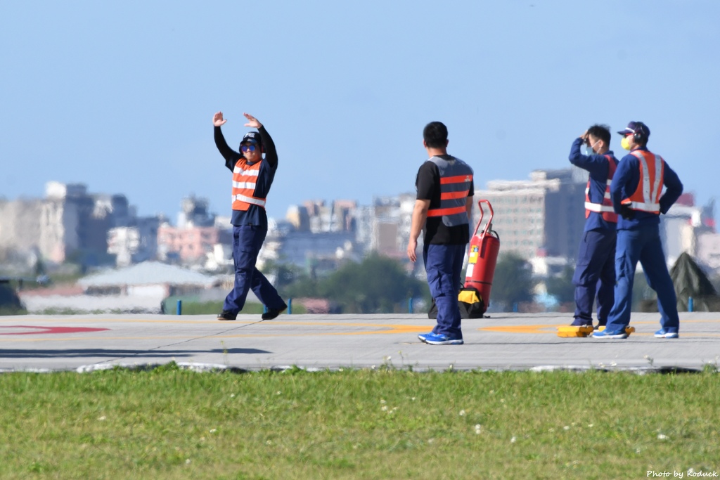 跑道頭看著戰機一架架進入整檢區,近距來觀察。有些飛行員還會熱情地打招呼,放下相機,也跟他們揮揮手。大坪上的地面作業人員也是拍攝的對象,看他們的手勢與動作,也是種樂趣。