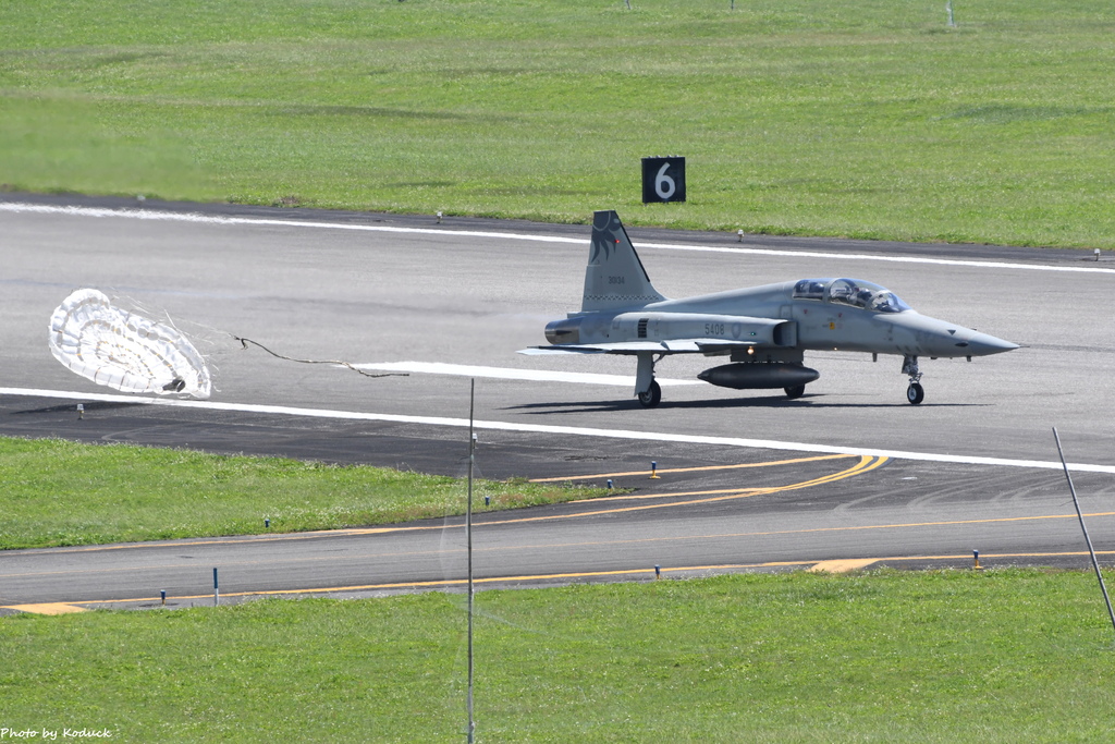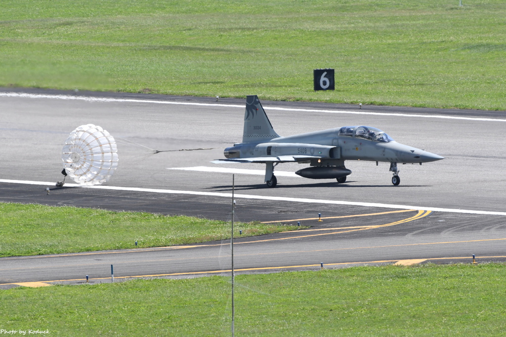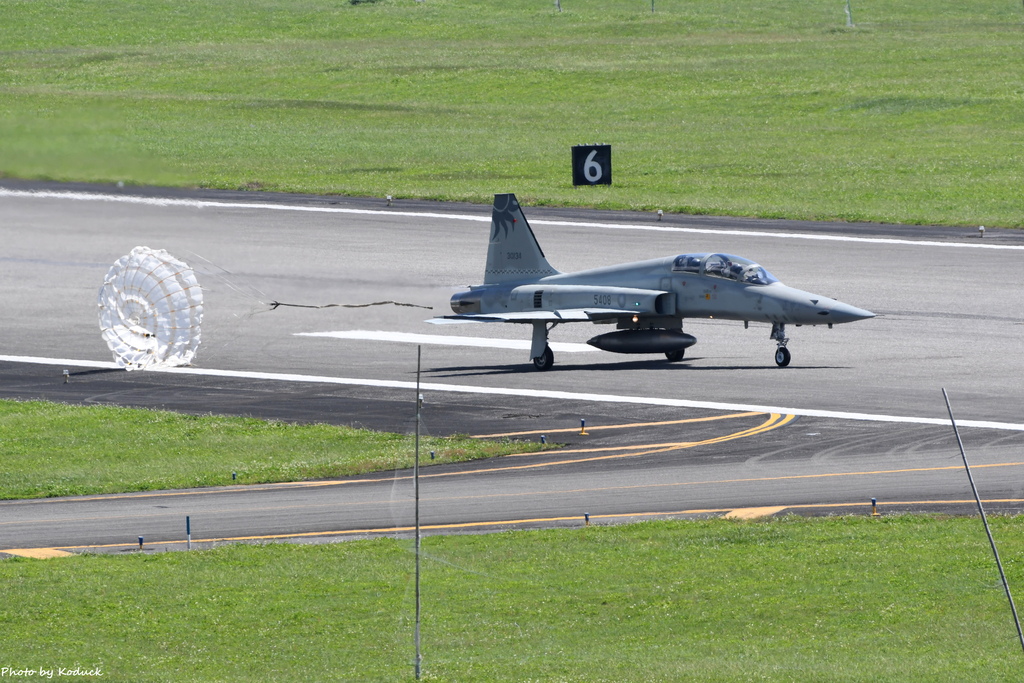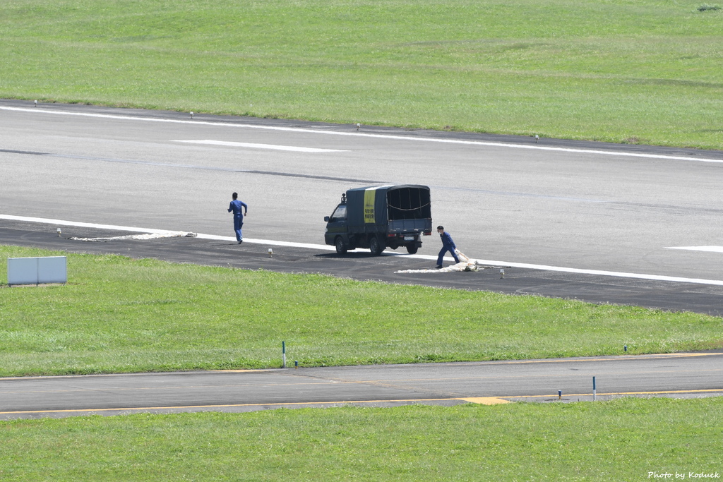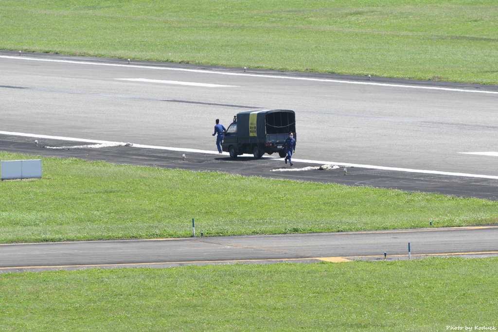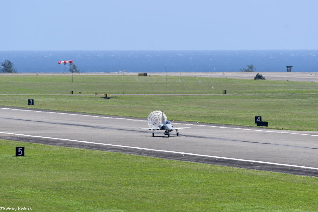 這次也到跑道尾端的制高點,拍拍降落後滑行過來的戰機,以前在這個點比較常拍的是RWY03起飛,拍RWY21降落倒是真的比較少。F-16一路滑過來,F-5還要在跑道中段將減速傘解開,真的是上來親自確認才知道原來是這樣作業的。
