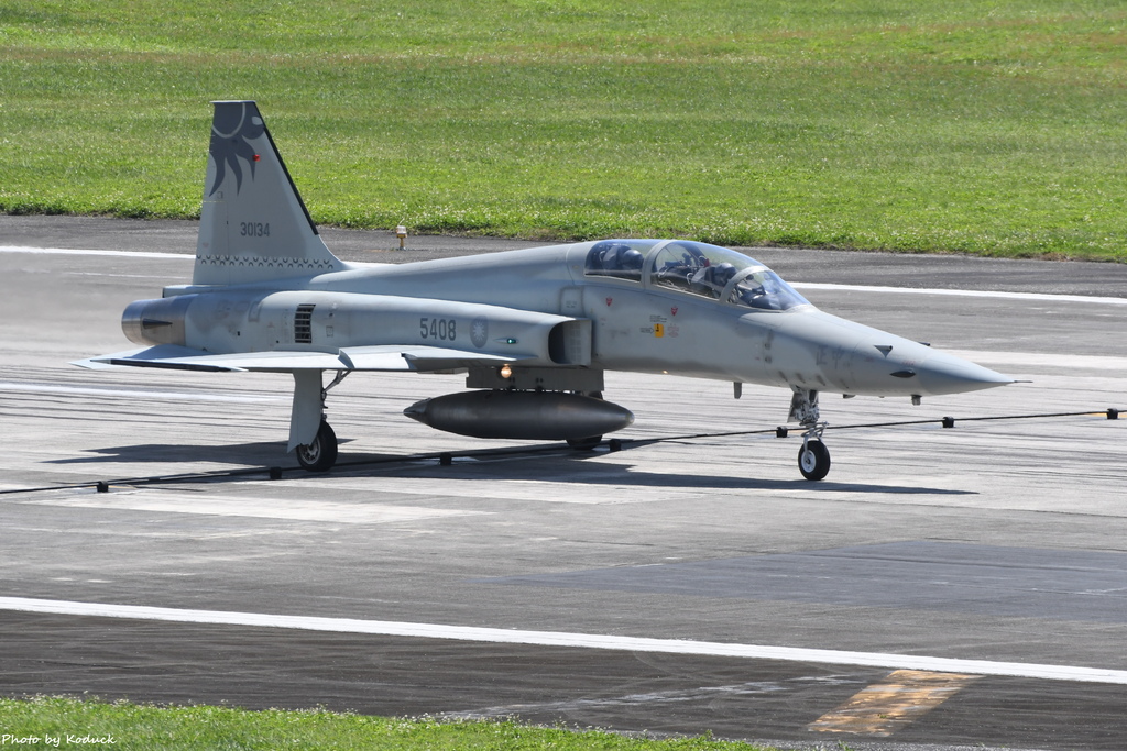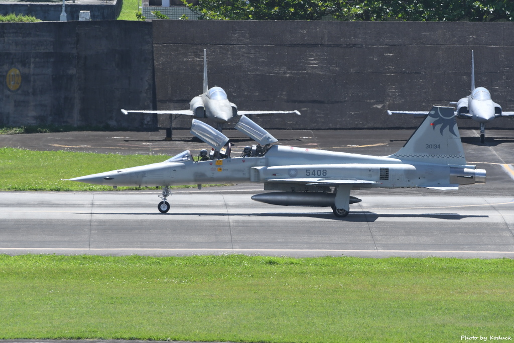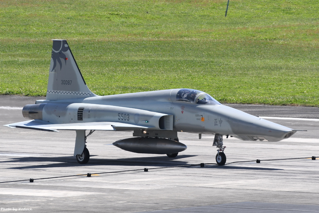 (36)現役F-5滑行通過兩架退役的F-5前面。