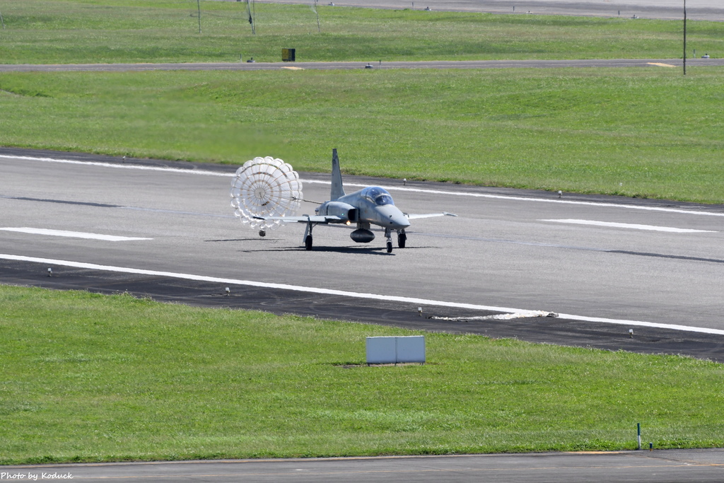 (29)另一架降落的老虎緊跟在後,打開降落傘,機頭已經明顯往跑道側轉向。