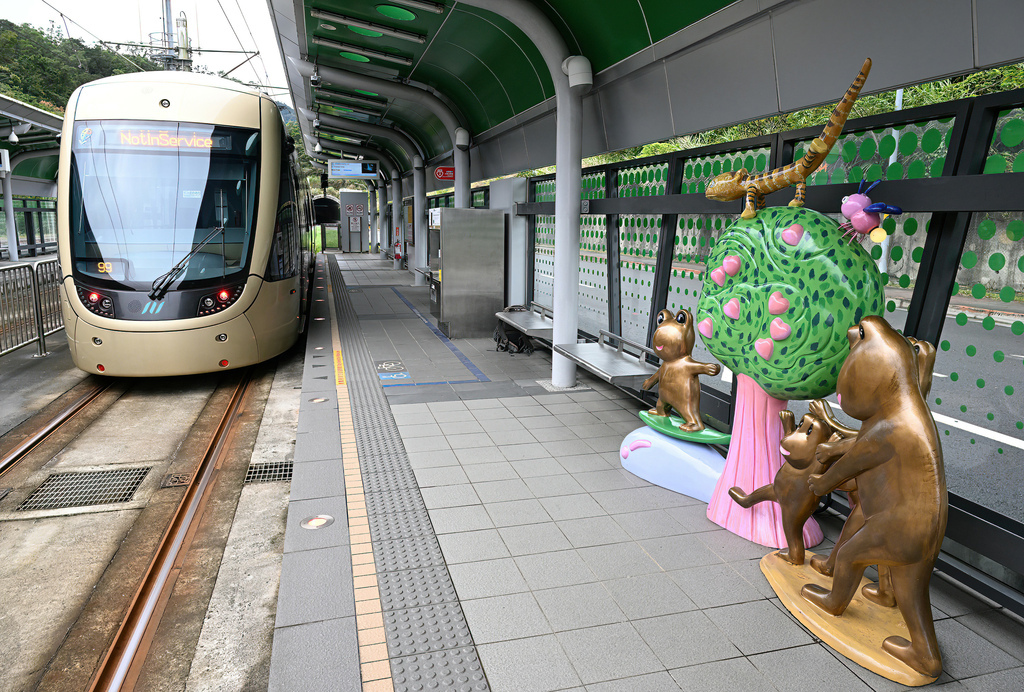 回到雙城站的電車,準備到折返點調車做下一趟運用,趁列車離開前跟站內可愛的藝術品合影一張。雙城站周遭是山區,有許多的生態景物值得欣賞,歡迎大家來這裡享受自然之美。