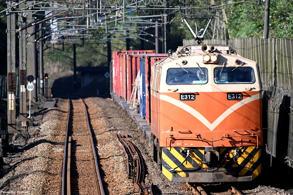 (31)7558次貨列@三貂嶺牡丹間。早上的下行的貨列,剛好帶著貨櫃,來這裡架梯拍還不錯。