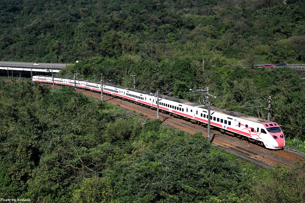 (51)普悠瑪號@暖暖四腳亭,早上來這一側比較順光,後方62號快速道路這一天車流不多。