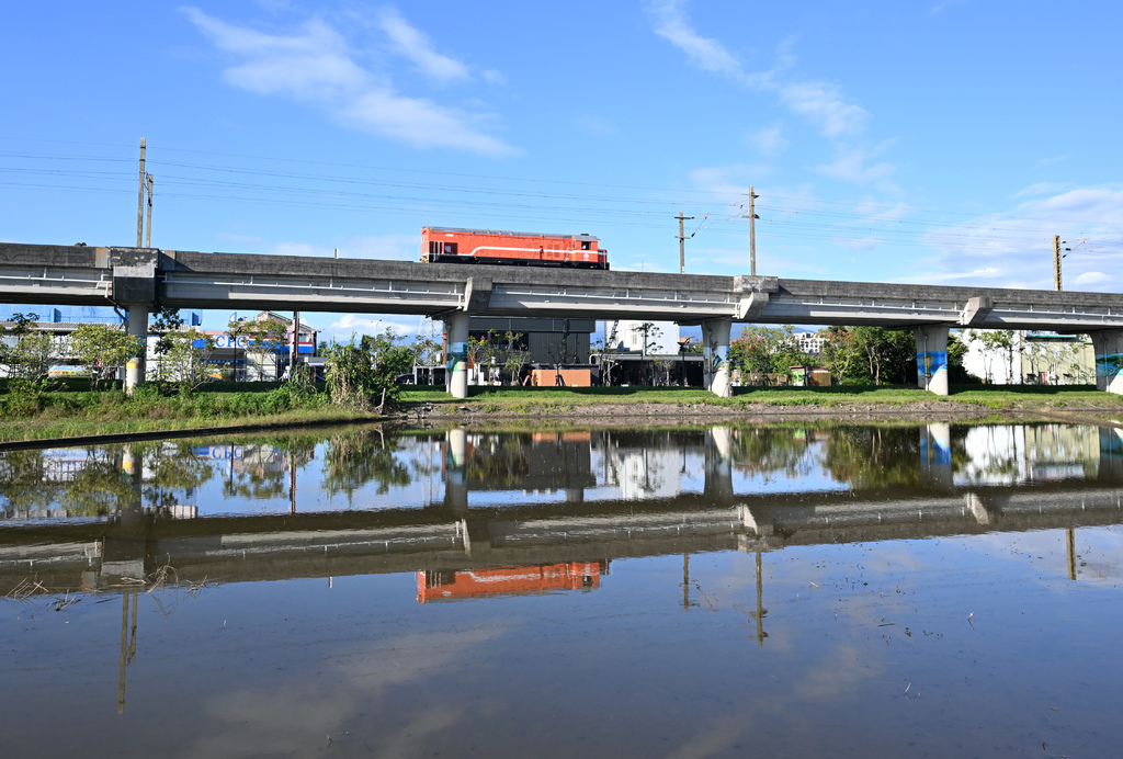 (28)7402次@宜蘭四城間,拍拍高架段倒影。